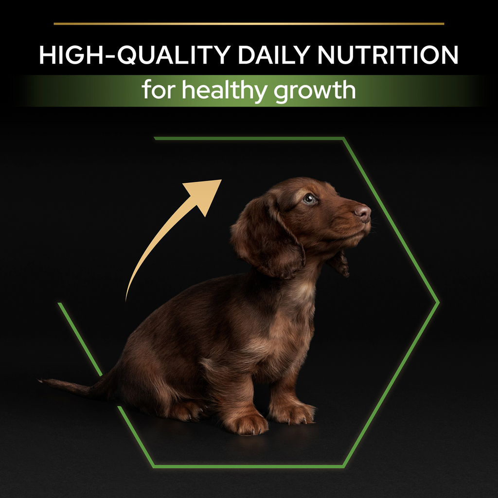 Purina PRO PLAN Healthy Start SMALL&MINI PUPPY is suitable for small & mini breed puppies (less than 10 kg adult weight). This dry puppy food contains vitamin D, minerals and specific levels of omega-3 fatty acids (0.4%) to help support healthy teeth and gums. It is rich in high quality chicken and provides optimal nutrition for your small & mini-sized puppy's growth up to 12 months of age, when they become fully grown.