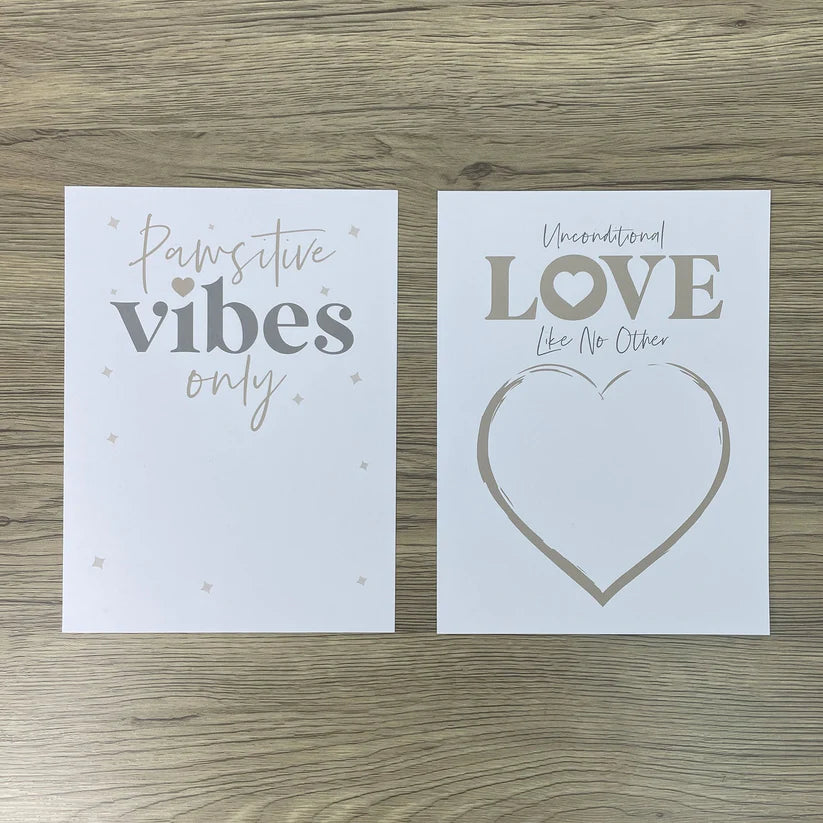 Choose from two adorable designs in our paw print keepsake kit! Each 2 x A5 print features a printed design on both sides, giving you a backup in case of a mistake.