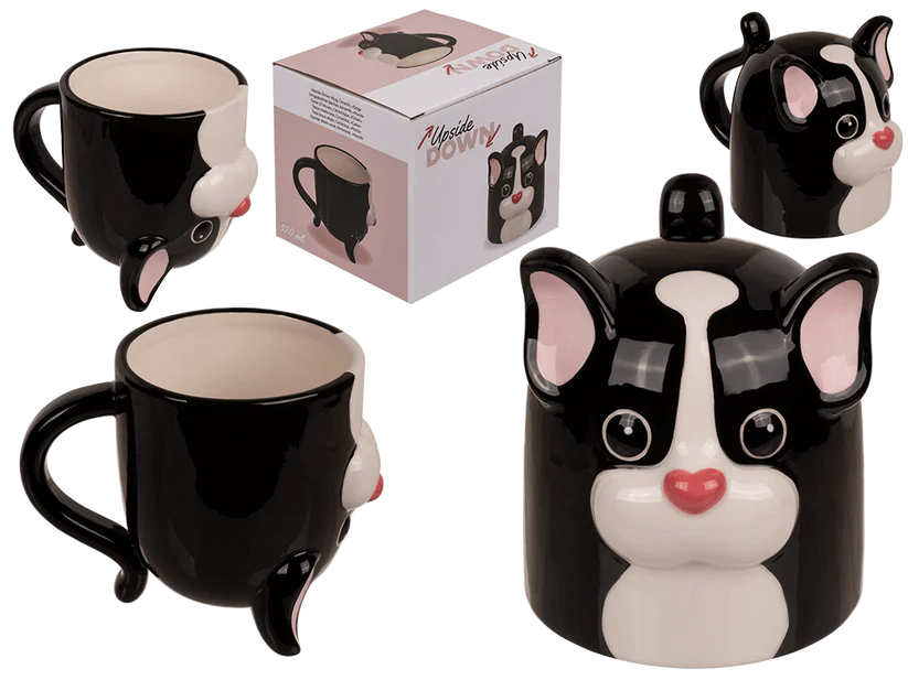 Celebrate your puppy love with this charming Puppy Upside Down Mug! This 500ml ceramic mug features an adorable puppy design that flips the fun upside down, bringing smiles to every sip. Perfect for dog lovers, pet enthusiasts, and anyone who enjoys playful, conversation-starting drinkware. An ideal gift for those who appreciate whimsical novelty items and heartwarming animal designs. Whether you're a devoted dog parent or simply adore puppies, this mug adds a touch of canine charm to your daily routine.