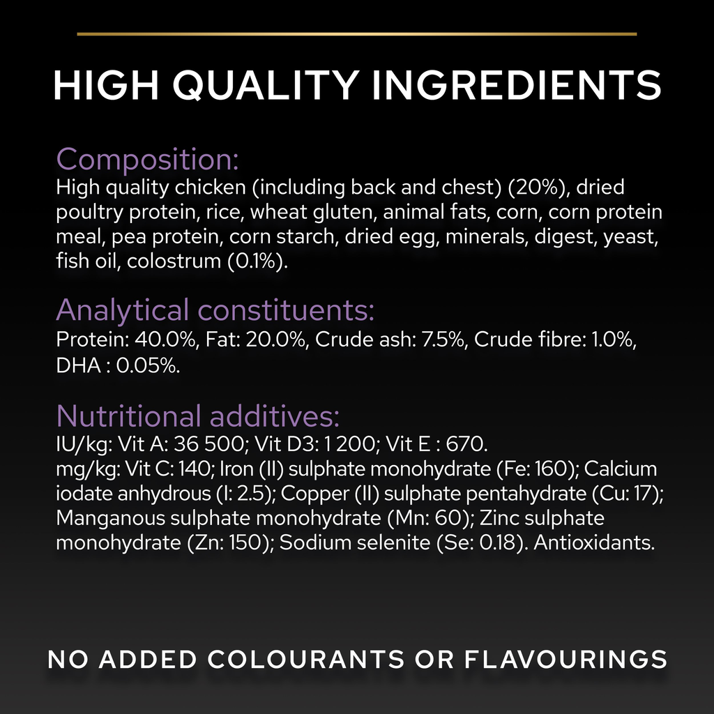- Formulated with colostrum to help support kittens' immune responses up to 50% more